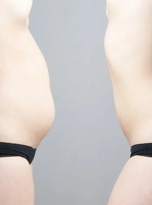 La lipoaspiration concerne les poignées d’amour, la culotte de cheval ou les deux simultanément, offrant une jolie courbe reliant la taille aux cuisses.